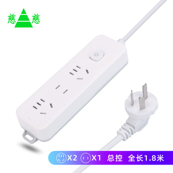 慈慈 新国标插座/插排/插线板/排插/插板/拖线板/接线板 3位总控 全长1.8米 A102