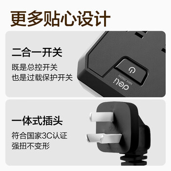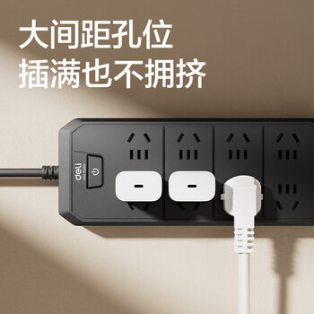 得力(deli)3C认证国标安全插座/插排/插线板/接线板/排插/拖线板 8位3米 总控开关 黑色 18336(03)