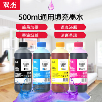 双杰打印机墨水适用爱普生打印机墨水 佳能 小米打印机墨水惠普805 803 682墨盒墨水彩色打印机墨水500ML通用墨水