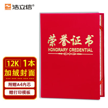 浩立信(LISON)【全网低价】5903-12K荣誉证书外壳奖状证书绒面烫金高档封皮获奖保护套附赠内芯