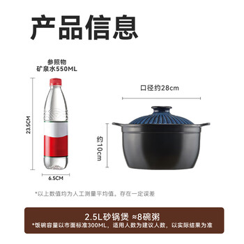京东京造 日式耐热陶瓷砂锅2.5L 养生煲汤锅炖锅 澳洲进口锂辉石燃气灶