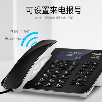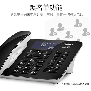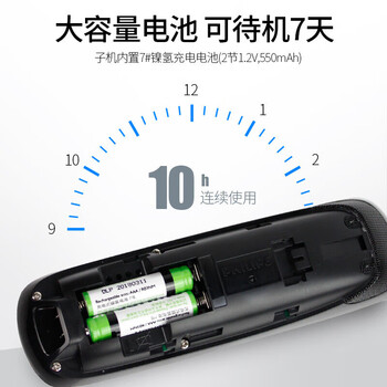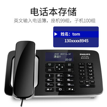 飞利浦(PHILIPS)自动录音电话机 子母机 无线座机办公家用中文菜单可录音1000小时 DCTG492+ 黑色