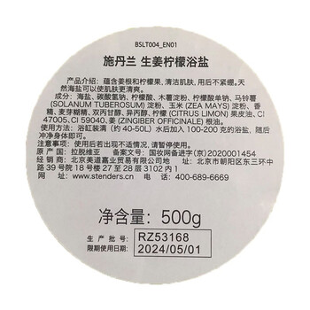 施丹兰(STENDERS)生姜柠檬浴盐500g 泡澡浴盐泡脚滋润肌肤 以盐养肤 新年礼物