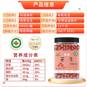 祁连裕农有机花生900克x1罐
