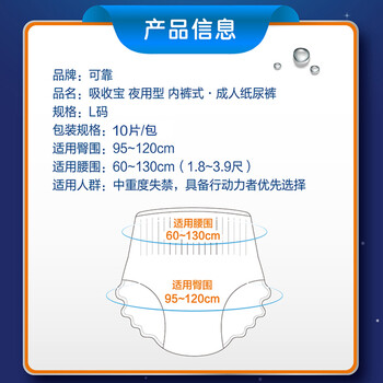 可靠(COCO)吸收宝夜用成人拉拉裤 L10片(臀围95-120cm)老年人内裤型纸尿裤
