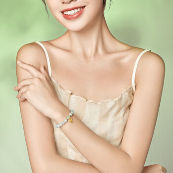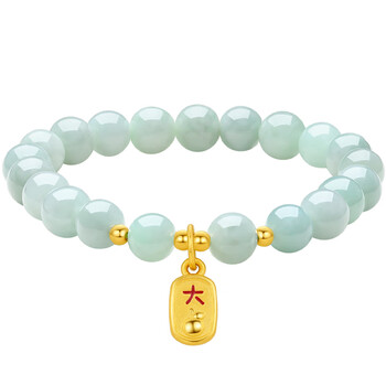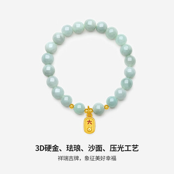 周六福3D硬金黄金手串 大吉大利 黄金翡翠手饰 Y1911115 17cm生日礼物
