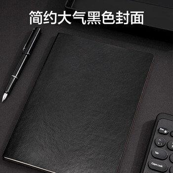 得力(deli)大本笔记本16K80张软面皮面本记事本办公用品工作日志本250mm*175mm 黑色7996