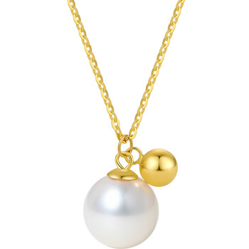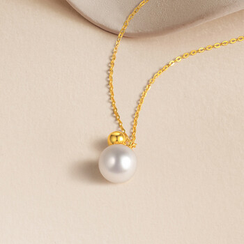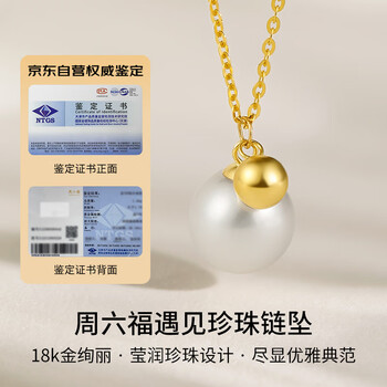 周六福黄18K金珍珠项链吊坠生日礼物 X0611110近圆约7.5mm 40+5cm