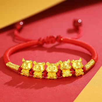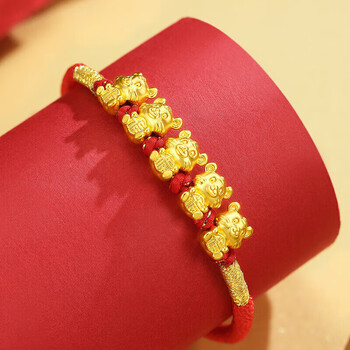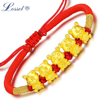 Lossot生日礼物本命年十二生肖虎足金五福虎黄金转运珠手链5D硬金虎