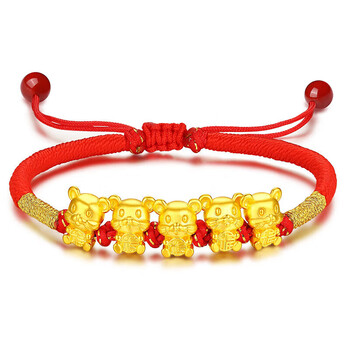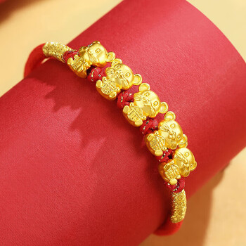 Lossot生日礼物本命年十二生肖鼠足金五福鼠黄金转运珠手链5D硬金鼠