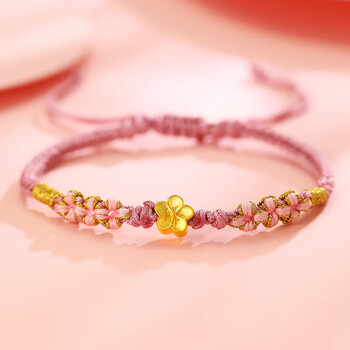 Lossot生日礼物送老婆足金桃花黄金转运珠手链女3D硬金花朵编织绳手饰