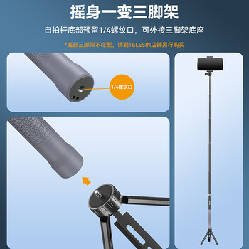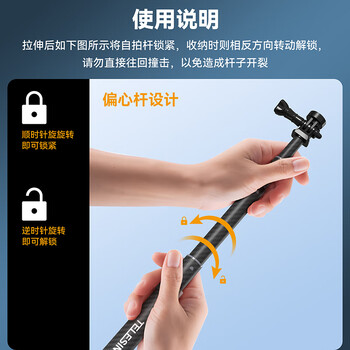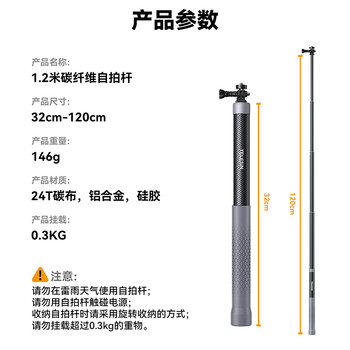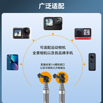 TELESIN(泰迅)大疆action4 5pro碳纤维自拍杆适配gopro13 12自拍杆insta360手持杆偏心管设计 1.2米长度