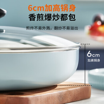 九阳(Joyoung)不粘煎锅聚油加深平底锅煎饼煎蛋煎牛排锅燃气明火专用墨峰蓝28cm