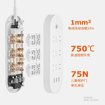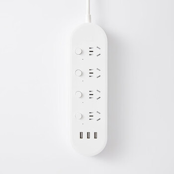 吉屋轻智 EMP513USB-CN USB插座/插线板/插排/多功能排插/接线板/拖线板 3USB接口+4孔位分控 1.8米 白色