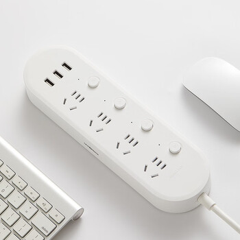 吉屋轻智 EMP513USB-CN3 USB插座/插线板/插排/多功能排插/接线板/拖线板 3USB接口+4孔位分控 3米 白色