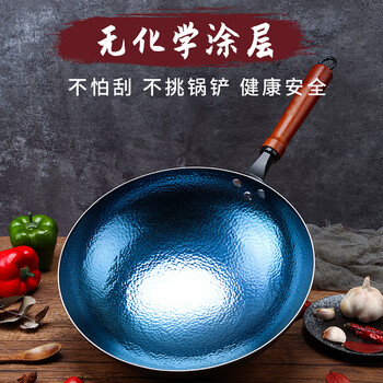 金存章丘炒锅铁锅炒菜锅无涂层老式熟铁锅 锤印轻便款木把34cm已开锅