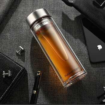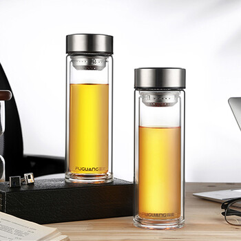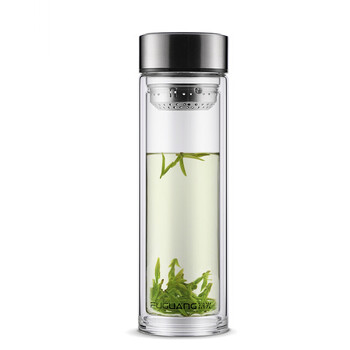 富光 商务便携双层玻璃杯330ML G1801-SH-330
