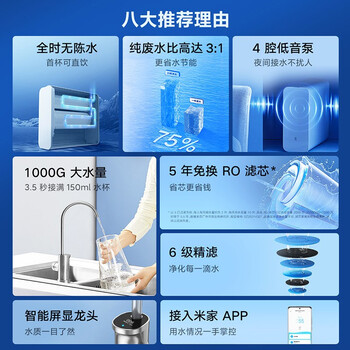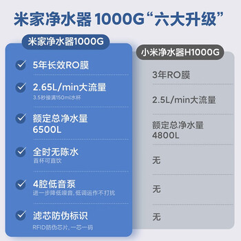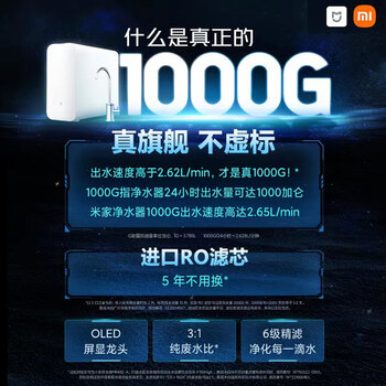 米家 净水器家用净水器 全时无陈水低噪省水 5年RO反渗透 厨下直饮净水器 2.65L 米家净水器1000G