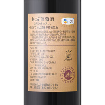 长城 优选级解百纳干红葡萄酒 650ml*2瓶*3盒