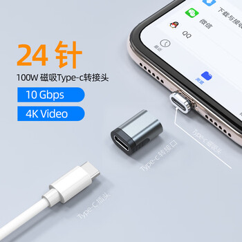 JPLAYER Type-C电脑磁吸转接头PD100W/10GBPS数据传输4K60HZ高清投屏适用苹果华为小米联想笔记本充电直头