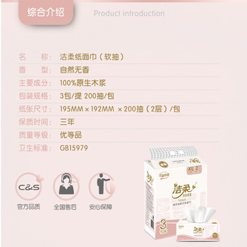 洁柔 软抽2层200张商用宽幅抽取式加大号XL面巾纸30包CR043-03A