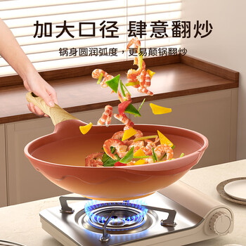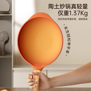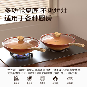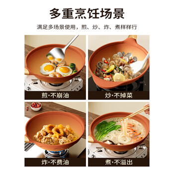 Amercook陶土炒锅不粘锅阿尔菲塔平底炒菜锅家用阿米尔锅电磁炉燃气灶专用