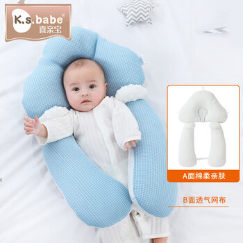 喜亲宝 婴儿定型枕头新生儿安抚抱枕睡枕宝宝双面可用【睡头型+安抚】蓝