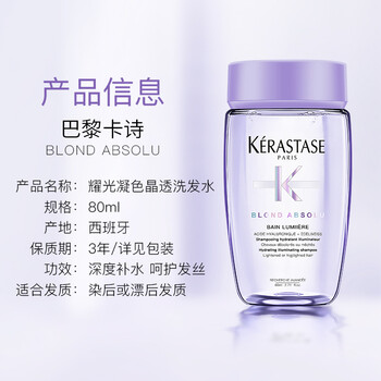 卡诗(KERASTASE)耀光凝色洗发水 试用装&介意慎拍80ml 1号会员店