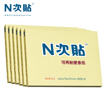 N次贴(STICKN)6本装便利贴报事贴/便条纸/便签纸/便签本76*101mm自粘留言本600张 黄色31009-J6