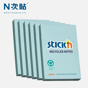 N次贴(STICKN)6本装环保再生纸便利贴报事贴/便条纸/便签纸/便签本76*51mm600张 蓝色36503-J6