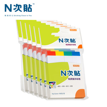 N次贴(STICKN)2400张4色便利贴分条索引便签纸76*14mm标签贴记事便条纸 标头荧光6袋装34018-J6