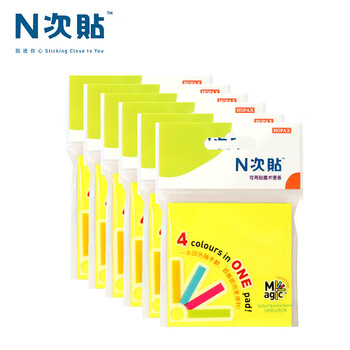 N次贴(STICKN)6本装魔术便利贴报事贴/便条纸/便签纸/便签本76*76mm600张 荧光四色31101-J6
