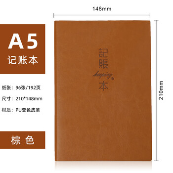 XYBP 记账本手帐现金日记家庭理财笔记本省会日常开支登记册存钱本明细记事本(A5棕色)