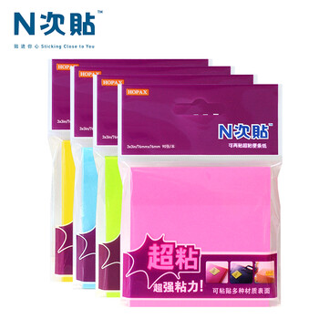 N次贴(STICKN)4本装超粘便利贴报事贴/便条纸/便签纸/便签本76*76mm360张 荧光四色31098-J4