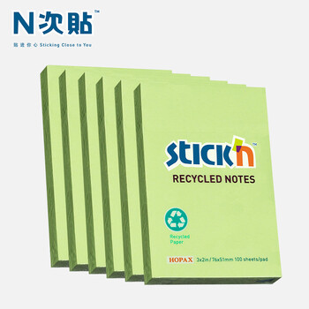N次贴(STICKN)6本装环保再生纸便利贴报事贴/便条纸/便签纸/便签本76*51mm600张 绿色36504-J6