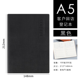 XYBP 客户回访跟踪记录本A5房地产保险汽车销售跟进本客户意向表记录册(A5黑色)
