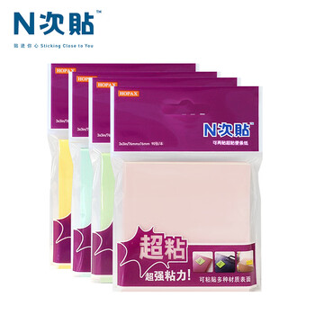 N次贴(STICKN)4本装超粘便利贴报事贴/便条纸/便签纸/便签本76*76mm360张 柔和四色31097-J4