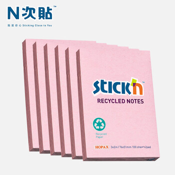 N次贴(STICKN)6本装环保再生纸便利贴报事贴/便条纸/便签纸/便签本76*51mm600张 粉红36502-J6