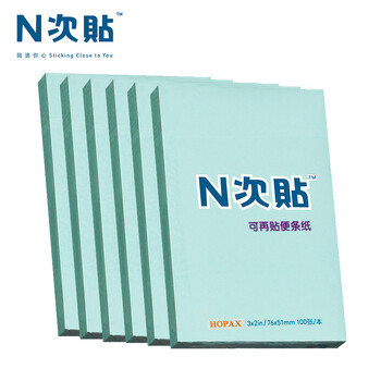 N次贴(STICKN)6本装便利贴报事贴/便条纸/便签纸/便签本76*51mm自粘留言本600张 蓝色31003-J6