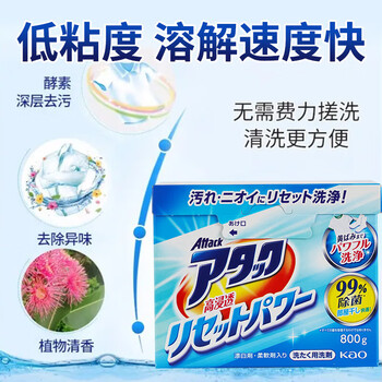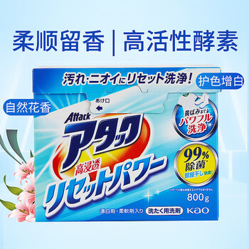 花王(KAO)洗衣粉800g 深层去黄污垢除菌消臭异味洁霸机洗衣服皂粉进口