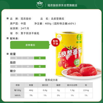 冠农股份25年产新疆新鲜去皮整番茄罐头400g*1罐新鲜西红柿块番茄丁