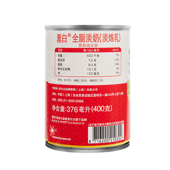 BLACK&WHITE黑白淡奶奶茶店用全脂淡奶港式丝袜奶茶原料400g*3