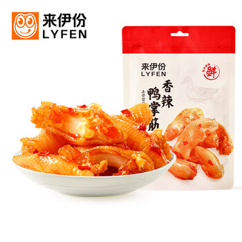 来伊份卤鸭掌筋香辣味90g卤味熟食去骨鸭爪鸭脚下酒菜肉干肉脯休闲零食