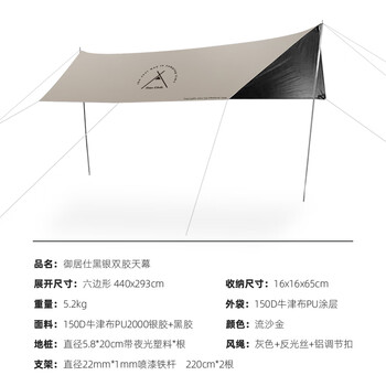 御居仕YJS黑胶涂银双层天幕户外遮阳防晒沙滩遮阳棚防雨露营凉棚天幕