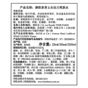 产品(注册/备案)名称 碧欧泉男士水动力爽肤水 & 碧欧泉男士全新水动力保湿乳液