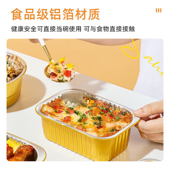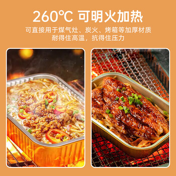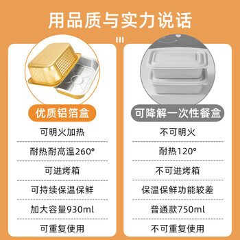 唐宗筷 一次性铝箔打包盒930ml*10个 加配盖饭盒 方形加厚 外卖餐盒露营