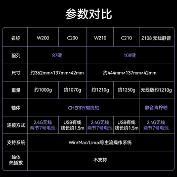 ikbcW200无线键盘键盘87键 机械键盘键盘办公打字手感好樱桃键盘键盘电竞游戏 工业灰茶轴
