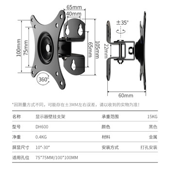 适用vesa孔距 75x75mm;100x100mm
