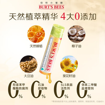 伯特小蜜蜂(Burt's Bees)经典润唇膏山姆同款男女通用天然保湿滋润清爽无色 细致修护4.25g