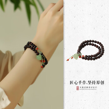 凤凰涅磐小叶紫檀手链女款檀木手串女佛珠文玩串珠岫玉首饰生日礼物女